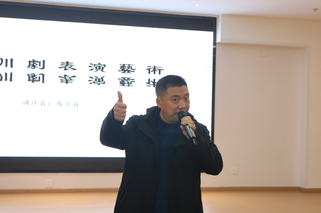 讲座中,蒋万海教授以深入浅出的语言,介绍了川剧艺术的起源、发展及核心特征。他指出,川剧融合了四川方言、民间音乐和舞蹈元素,以“虚实结合”的表演风格和“变脸”“水袖”等绝技闻名,既扎根地域文化,又兼具雅俗共赏的艺术生命力。