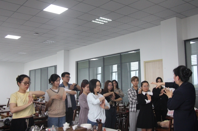 4月24日下午,国际旅游学院茶艺实训室内茶香缭绕,来自越南、泰国的留学生手持茶具,专注地跟随国际旅游与休闲体育学院茶艺培训师肖媛媛老师的讲解,开启了茶韵流转的东方美学探索之旅。