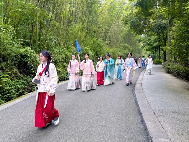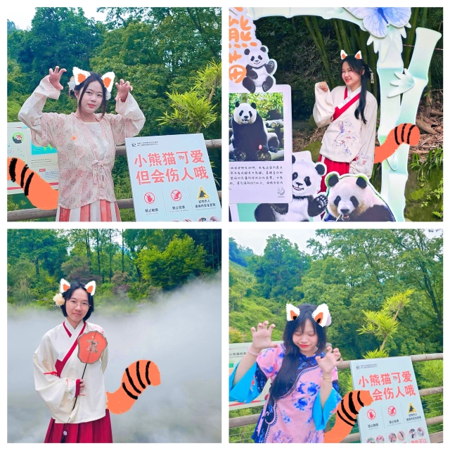 此次活动的核心价值,在于中外学生的紧密协作与文化共享。汉服社、导游和酒店管理专业的中国学生各展所长,成为传递中华文化的真诚使者;留学生们身着汉服探访熊猫家园,亲身体验了人文传统与自然生态的完美交融。这趟独特的文化之旅,不仅增进了彼此情谊,更在共同实践中深化了对中国“天人合一”智慧的理解。这份由汉服与熊猫共织的“天府印记”,将成为留学生们归国后讲述中国故事、联结友谊的珍贵纽带。