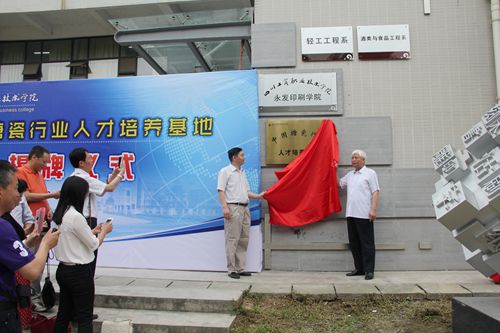 仪式上,胡晓明理事长和管永林书记共同为四川工商职业技术学院“中国搪瓷行业人才培养基地”揭牌。