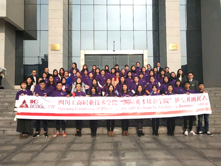为了响应学院创建优质高职院校的宏伟目标,全面提升酒店管理专业人才培养质量,经过大量的前期准备工作,1月18日上午,我校经管系2017级国际酒店班开班仪式在J1A108举行。学校副院长岳文喜、成都温江皇冠假日酒店人力资源部总监邓兵先、青城国际酒店人力资源部总监冯荣辉、成都温江皇冠假日酒店人力资源部主管蔡欣岑,青城豪生酒店人事主任尹振飞,都江堰旅游研究发展中心主任蔡登火及经管系酒店教研室全体教师参加了此次开班仪式。