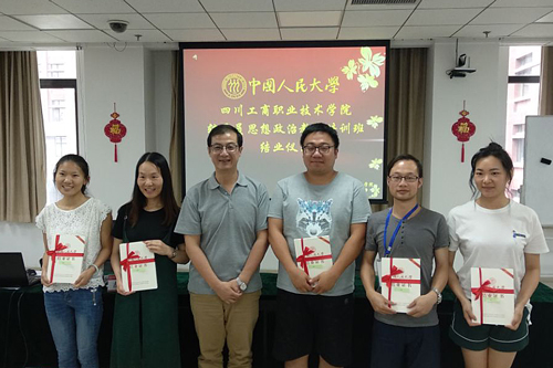 “感谢学校为辅导员们,度身定制了如此高规格思想政治教育培训,此次培训吸取的营养,定会很好的指导今后的工作,走好我们未来的路。”这是我校经管系辅导员辜良军,在7月14日下午,在中国人民大学举行的我校辅导员思想政治教育培训班结业典礼上作为学员代表讲话时,发自内心的感言。在当天下午举行的结业典礼上,中国人民大学心理健康教育与咨询中心主任胡邓为学员代表颁发了《结证书业》,全体学员还观看了“明德英才.不负韶华”电子相册,一起回味了这段难忘的学习之旅,不凡的美好时光。结业典礼由中国人大国际关系学院培训部副主任李晓峰主持。