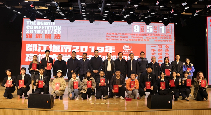 11月28日,由我校承办的“2019年都江堰驻市高校大学生法治辩论赛”决赛鸣金收兵。四川省委依法治省办副主任、省司法厅党委副书记、副厅长王彬,都江堰市委常委、宣传部部长唐小峰,市人大常委会副主任杨锋,副市长达军,市政协副主席严代雄,省委依法治省办秘书处副处长吴舒,成都市司法局普法与依法治理处副处长施尚君等莅临活动现场,我院党委书记管永林、副书记黄天贵、副院长邓春生出席了活动,管永林书记代表学校在活动中致辞。