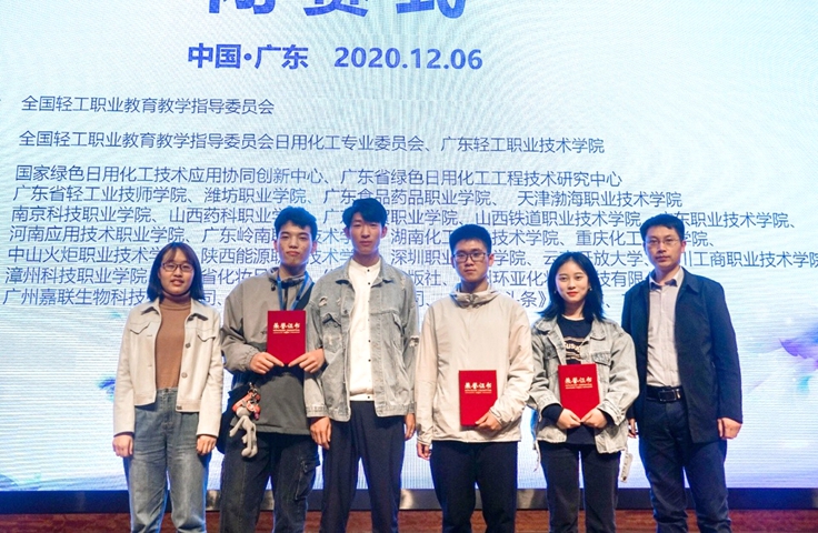 12月5日至6日,由全国轻工职业教育教学指导委员会主办,广东轻工职业技术学院承办的2020年第三届全国大学生化妆品配方技术技能大赛在广东轻工职业技术学院举行,来自广东、山东、天津、河南、江苏等多个省市的70余名参赛选手参加了比赛。本次比赛设置项目包括理论知识考核、氨基酸透明皂实操考核、素颜霜实操考核。我校酒类与食品工程系精细化工技术专业付永山、杨玉婷指导的邓川、王渝霜、李培江、廖伦印4位同学荣获三等奖3项。