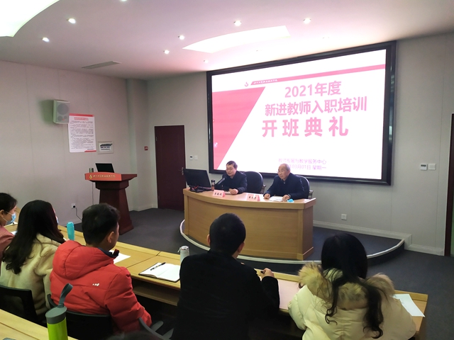3月1日下午,2021年度学校新进教师入职培训班开班典礼在教师发展中心微格教室举行。学校党委副书记、院长李春明,党委副书记黄天贵出席开班典礼,23名新教师参加开班典礼。