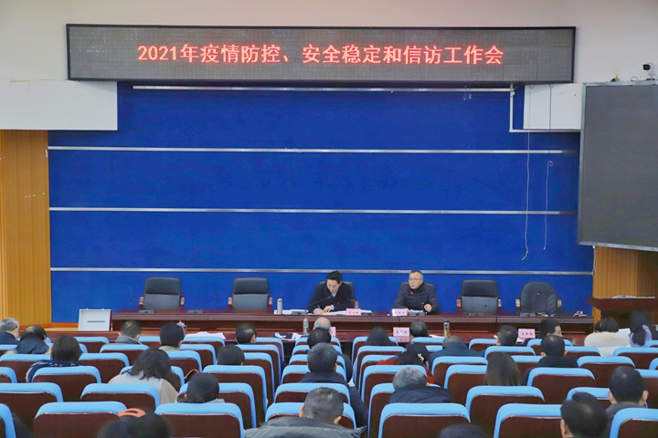 3月4日下午,我校在学术厅召开2021年疫情防控、安全稳定和信访工作会议。校党委书记管永林主持会议,全体党委委员、中层干部和中层后备干部参加会议。
