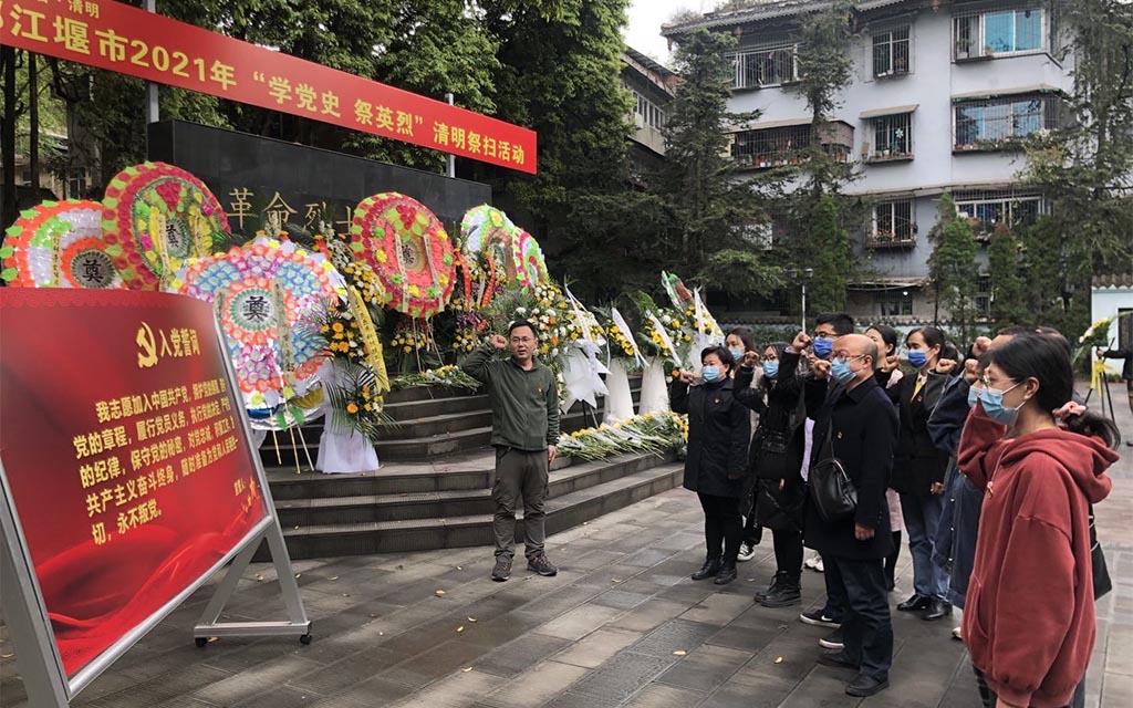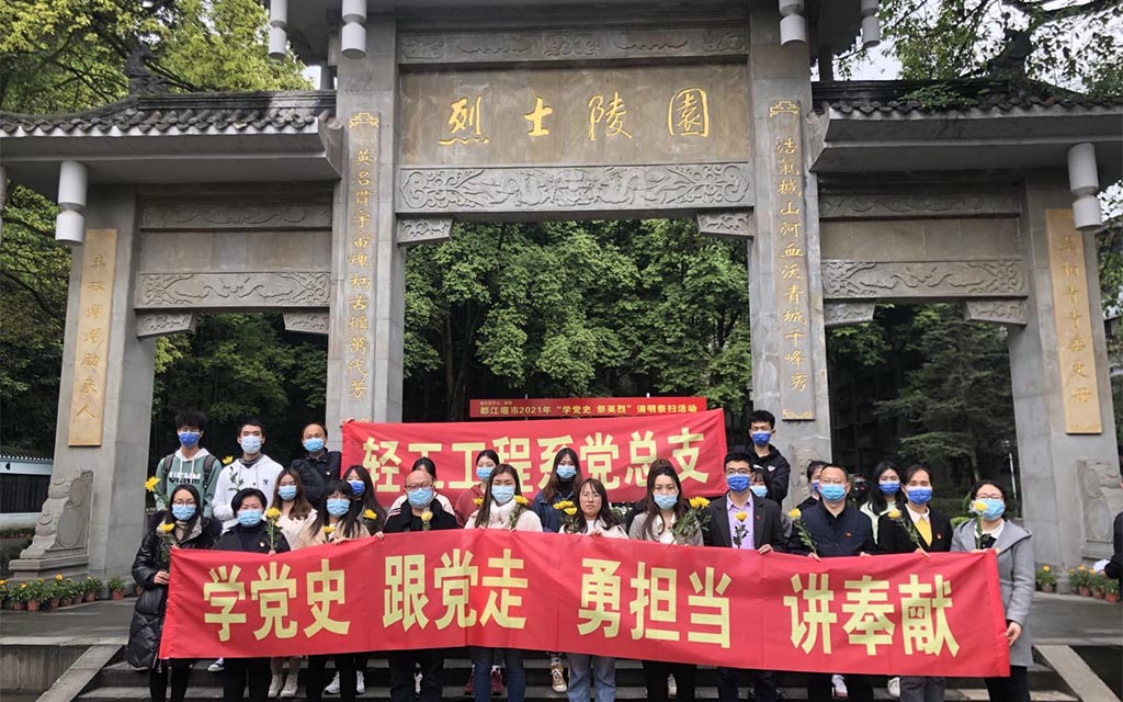 在清明节到来之际,为纪念革命英烈,传承红色基因,弘扬民族精神, 4月2日下午,轻工工程系党总支带领教师党支部和学生党支部全体党员赴都江堰烈士陵园开展“学党史、祭忠魂”缅怀革命先烈主题党日活动。
