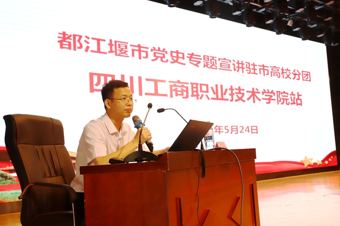5月24日下午,都江堰市党史专题宣讲驻市高校分团宣讲报告会在我校多功能厅二厅举行,市宣讲团成员、四川农业大学学工部副部长、都江堰校区副书记陈中桂作专题报告。都江堰市教育局党组成员、副局长张守军,市教育局办公室主任孙梅,市教育局党建工作科科长高正伟,学校全体党委委员、中层干部和中干助理、专兼职思政课教师、专兼职辅导员、各支部党员代表聆听报告。