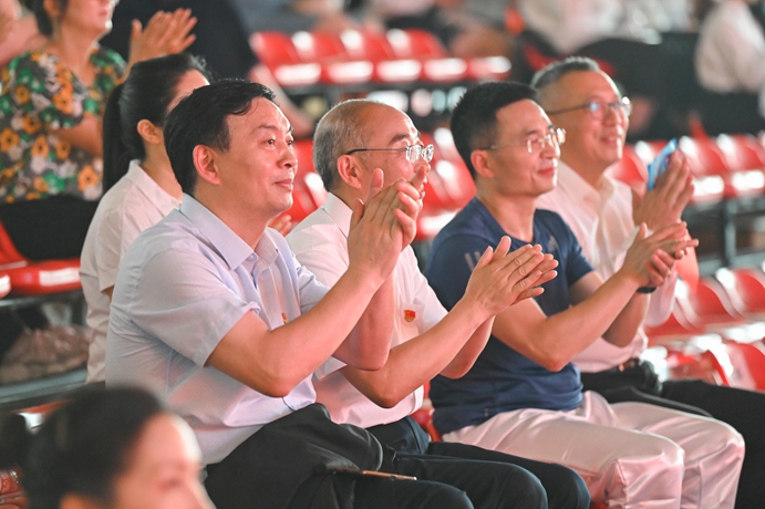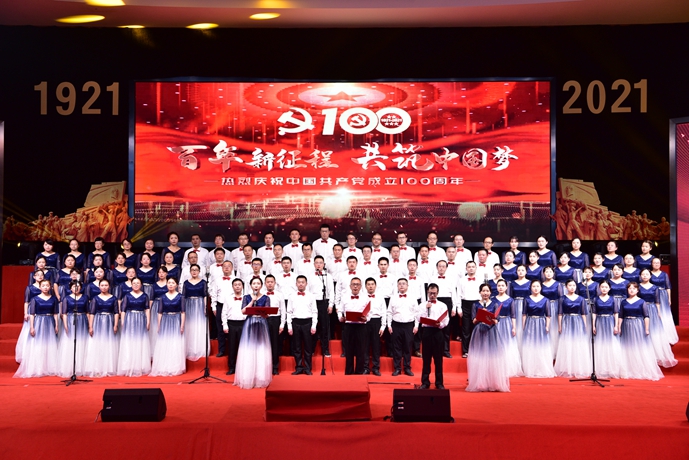 忆峥嵘岁月,颂百年辉煌。7月1日下午,素质拓展馆装扮一新,在舞台上方,党徽熠熠生辉,1921-2021金色字样赫然入目。我校隆重举行“欢歌新时代,颂歌献给党”为主题的师生合唱汇演,全校5支部门工会联队和8支学生合唱队共同登上舞台,用歌声抒发对党的无限热爱,唱响新时代华丽乐章。学校党委委员分别到所联系的部门合唱队参加演出,全校师生代表近千人共同观看汇演。