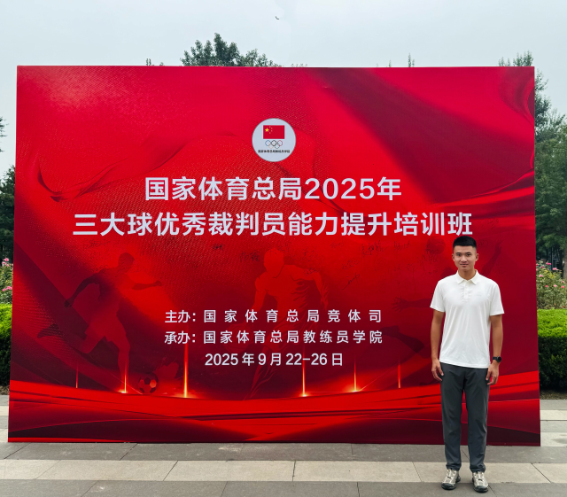 近年来,谢家琦老师多次经中国足协及省足协择优推荐,参加各级专业培训。今年9月22日至26日,谢家琦老师赴京参加由国家体育总局竞技体育司主办的三大球优秀裁判员能力提升班并圆满完成学习任务。通过此次培训,谢家琦老师在专业素质和业务能力方面取得了显著进步,为其今后承担更高层次的赛事执裁工作打下了坚实的基础。