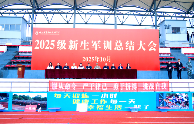 10月26日,四川工商职业技术学院在田径运动场隆重举行2025级新生军训总结大会。党委常委、副院长聂文俊出席大会。军训团团长高超,党委学生工作部部长刘晓,各二级学院党总支书记、承训教官、2025级辅导员及全体参训学生参加大会。