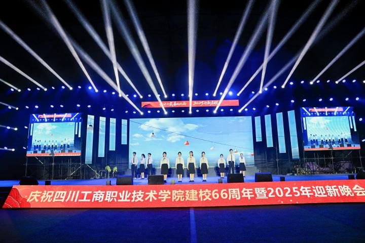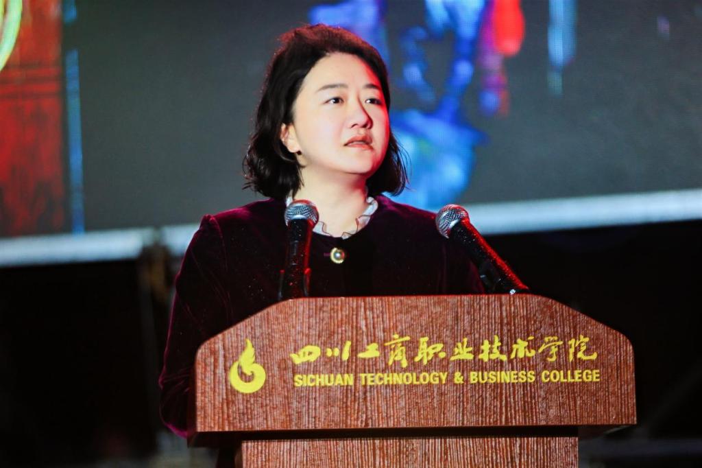 晚会伊始,党委书记刘珂致辞。她代表学院党委和全体师生员工,向来自五湖四海的新同学表示热烈欢迎。她指出,学院66年来秉持“明德强技,行健精艺”的校训,弘扬“负重自强,永争一流”的精神,坚持扎根巴蜀、服务区域发展,为社会培养了大批高素质技术技能人才,铸就了良好的社会声誉。她强调,“工商青年”将成为同学们共同的身份烙印,在母校66周年的新起点上,同学们不仅是历史的见证者,更要做未来的执笔人,以奋斗为墨、青春为卷,书写学校崭新辉煌,成就无悔年华。