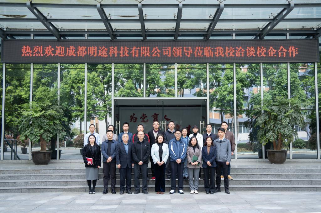 为深入推进AI + 职业教育产教融合,赋能产业数智化升级,4月7日,成都明途科技有限公司副总裁严骊一行到校洽谈校企合作。学院党委书记刘珂,党委副书记、院长邓春生,副院长邱春丽、魏明英陪同调研并参加座谈会。