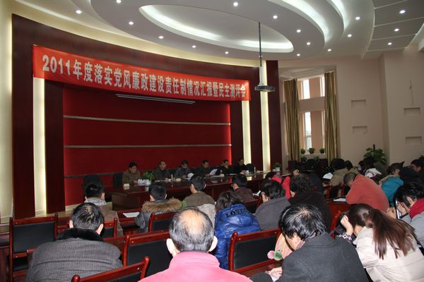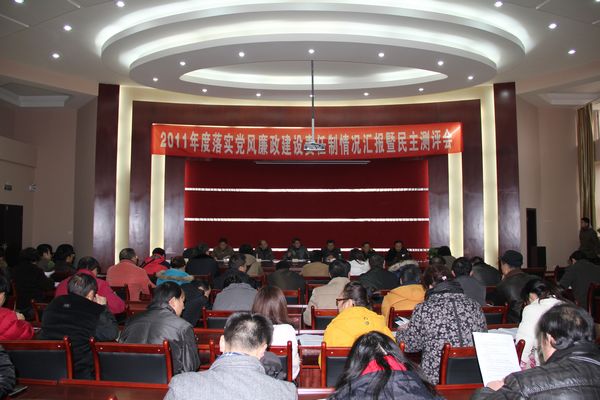 12月19日,学院在行政楼一楼会议室召开2011年落实党风廉政建议责任制情况汇报暨民主测评会。学院班子成员、中层干部、教代会代表、民主党派代表、离退休人员代表共85人参加会议。