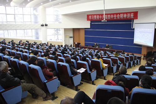 报告会对十八届四中全会召开的背景、意义以及《中共中央关于全面推进依法治国若干重大问题的决定》的重要内容进行了深入浅出的解读,阐述了全面推进依法治国的五大体系和健全依法决策机制,在全院掀起了学习贯彻十八届四中全会精神热潮。