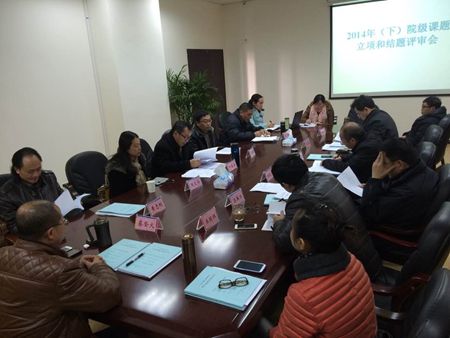 2015年1月21日上午,我院召开了2014年下半年院级课题立项、结题评审会,会议由岳文喜副院长主持,学院院长李春明教授、学术委员会全体委员及科技处相关工作人员参加了此次评审会。