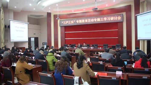 11月20日下午,学院党委中心组举行了“三严三实”专题教育学习研讨会。本次研讨以“严以用权,真抓实干,实实在在谋事创业做人,树立忠诚、干净、担当的新形象”为主题,学院领导、全体中层以上干部、青年后备干部以及财务处、资产经营管理处、基建办全体人员参加了此次学习研讨会,会议由党委书记管永林主持。学院党委书记管永林,党委副书记院长李春明,党委副书记黄天贵,副院长岳文喜、王开淮和中层干部代表环建处处长杨小拉、资产处处长衡丰先后进行了研讨发言。