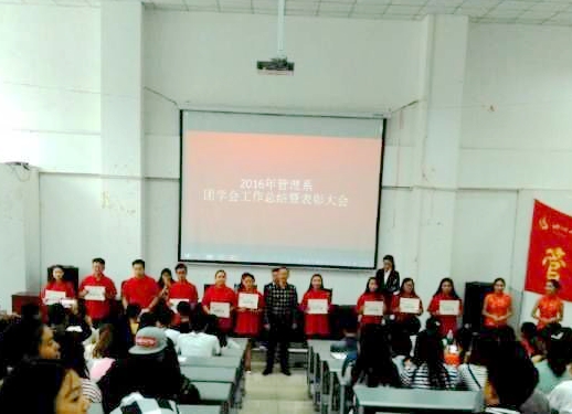 日前,管理系团学会工作总结暨表彰大会在我院1B演讲厅举行。管理系党总支副书记魏红军、团总支书记周乐等出席会议,学生会全体成员共百余参加了大会。