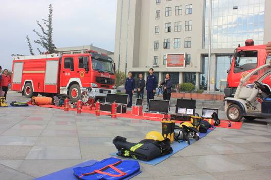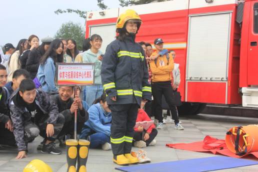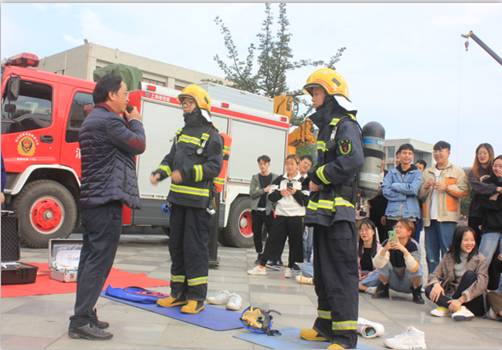 首先,保卫处吴勇副处长发表了“全民消防、生命至上”的主题讲话。然后,由万区中队长具体讲解了多种灭火工具使用方法、灭火器种类及使用等知识。其次,护校队员代表向大家展示了灭火作战服的穿戴方法。最后,为使师生更直观的感受并切身参与到消防安全工作中,各系派二名男女同学参与了现场快速穿戴作战服体验活动。各系学生在观看完演示后积极参与其中,身体力行的近距离观看了消防作战车和各种灭火器材的使用。最后,保卫处张思杨副处长对此次演练进行了总结,通过此次演练不仅使师生熟悉了救火器材及灭火器的正确使用方法,同时也使大家对消防安全工作的重要性有了深刻的认识,提高了消防安全防范意识,掌握了常用消防器材的使用与操作,促进了学院消防安全工作的开展。