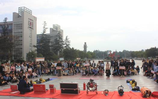 11月9日为全国消防宣传日。2019年消防日的主题为“防范火灾风险,建设美好家园。为加强消防安全管理,增强师生消防安全防范意识,掌握灭火技能,保卫处于11月6日下午3:40在国旗广场组织开展了以消防器材和灭火器使用知识为主要内容的消防培训、演练及体验活动。此次活动特别邀请了成都特勤大队孙阳、万区中队长到校进行指导,并开来2辆消防作战车及12种救火器材等,全院各系(部)400余名学生代表、保卫处老师及保安参加了此次活动。