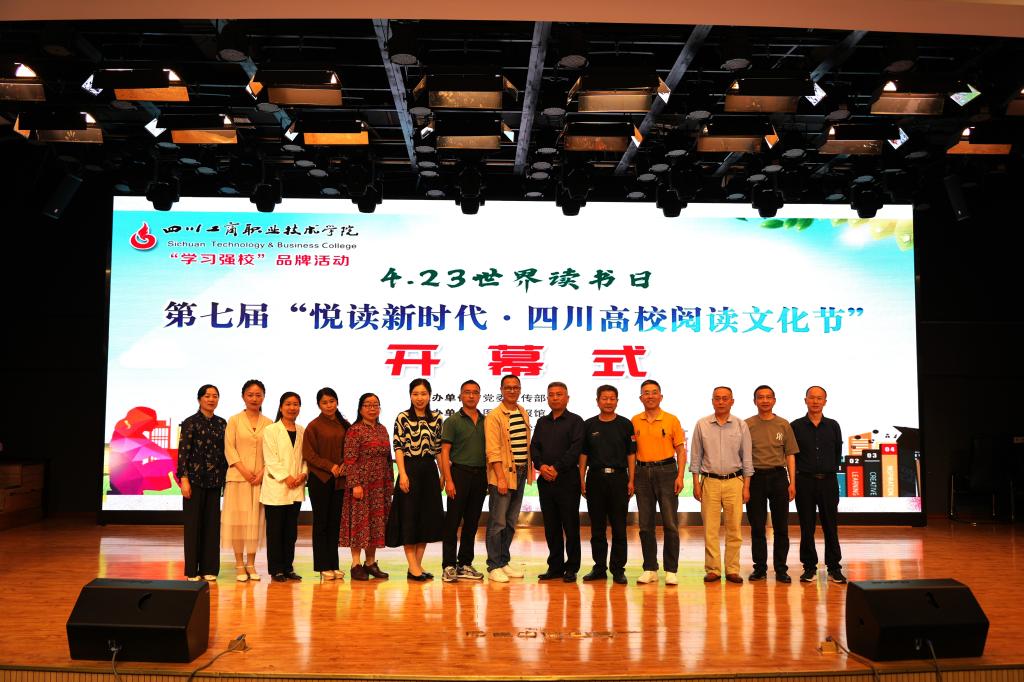 书香浸润人生,阅读点亮未来。在第29个世界读书日来临之际,我校已成功举办六届的“学习强校”品牌活动——校园阅读文化节在这春光明媚、书香悠远的四月天如约而至。4月22日,由党委宣传部主办、图书情报馆承办的第七届“阅读新时代 四川高校阅读文化节”在多功能厅二厅盛大开幕。学校党委常委、五级管理干部王银桃,党委常委、党委宣传部部长周婷,《青年文学家》作家理事会成都锦江分会孙大钧、牟峰、杨光英、吴显成、蔡建忠、林骏、漆斌、唐树蓉8位老师,都江堰市作家协会赵志伟老师等领导和嘉宾出席开幕式。学校党委宣传部、图书情报馆负责人,轻风文学社、读者协会会员和师生文学爱好者共300余人济济一堂,共襄盛会。