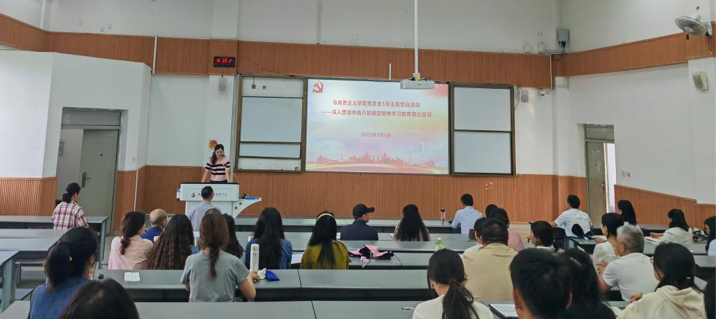 5月6日下午,马院对外交流合作党支部开展深入贯彻中央八项规定精神学习教育专题讲座,讲座邀请学校深入贯彻中央八项规定精神学习教育宣讲团成员代宇老师,对外交流合作党支部全体党员参加讲座。