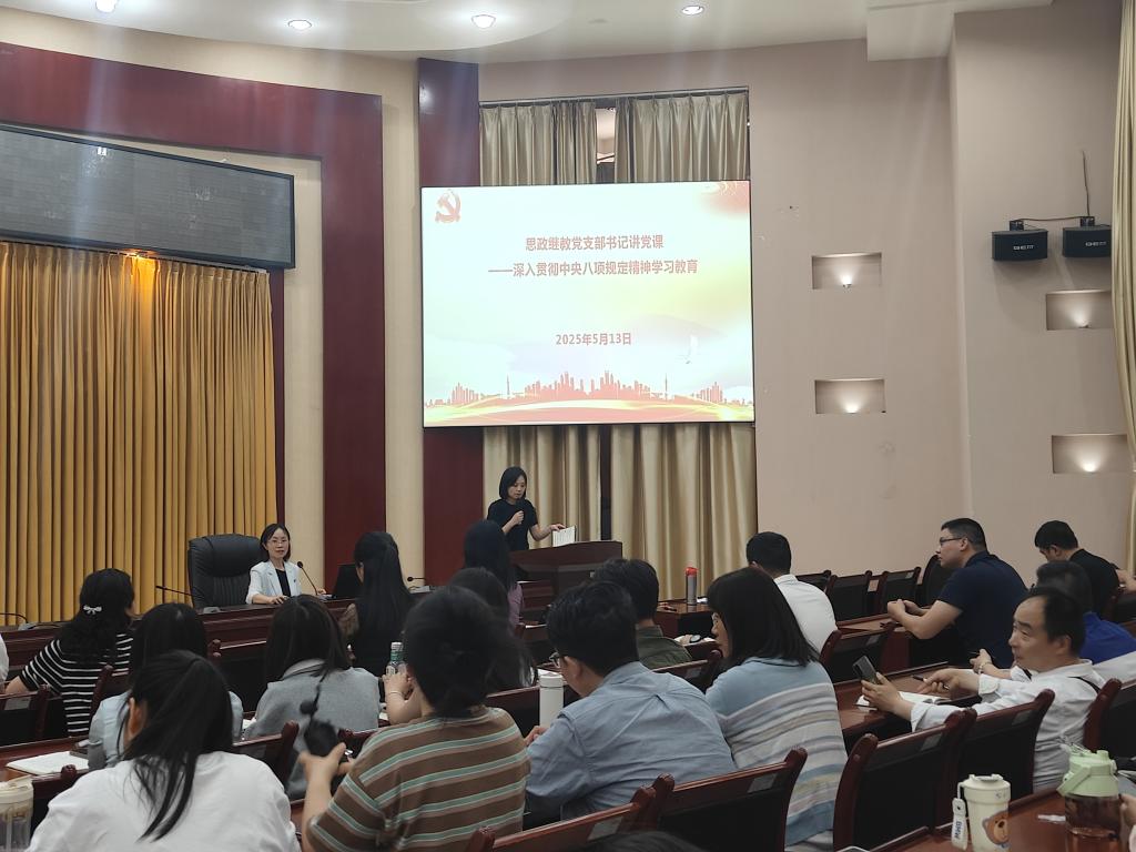 为深入学习贯彻中央八项规定精神,切实加强作风建设,5月13日下午,思政继教党支部开展支部书记讲党课活动。对外交流合作党支部全体党员参加。