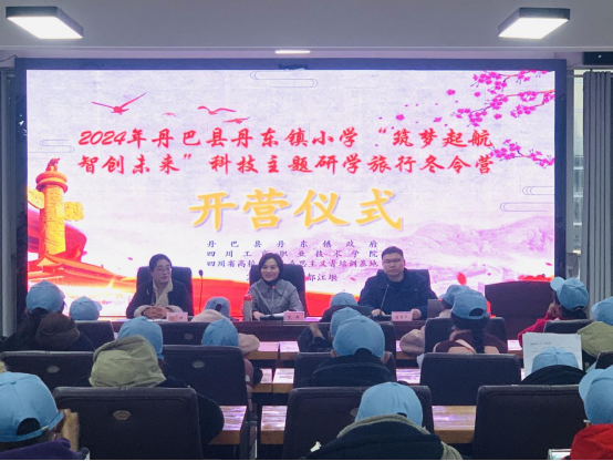 1月9日,甘孜州丹巴县丹东镇小学的42名优秀学生怀揣着兴奋与新奇走进校园,开启2024年丹巴县丹东镇小学“筑梦起航 智创未来”科技主题研学冬令营之旅,学校党委委员,党委行政办公室主任、学校定点帮扶办公室主任苑卉、丹巴县丹东镇小学德育办主任拉姆出席了在设计艺术学院会议室举行的冬令营开营仪式。仪式由学校继续教育部副部长唐贤华主持。